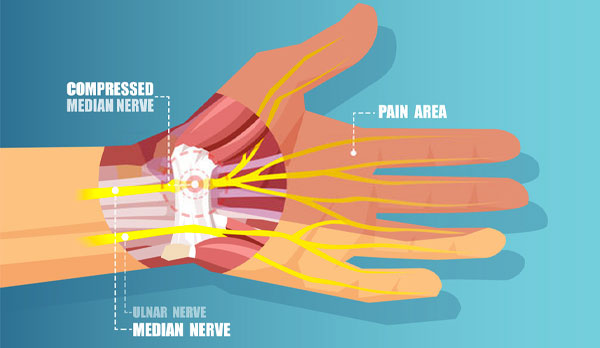 Carpal tunnel syndrome is a common condition that causes pain, numbness, and tingling in the hand and arm. The condition occurs when one of the major nerves to the hand — the median nerve — is squeezed or compressed as it travels through the wrist.